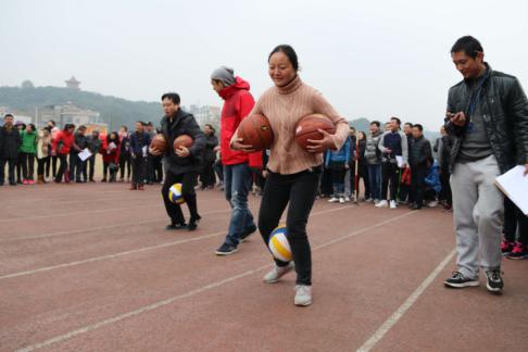 11月30日下午,湖南工程学院教职工趣味运动会在体育馆主田径场举行。