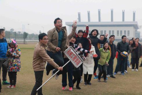 接力赛后紧接着是爱心传递,此项目是对团队协作与速度的考验,老师们俯下身躯,团队合作,球在手中灵活自如。在随后妙趣横生的企鹅漫步项目中,运动员两臂间夹两排球,双腿夹一篮球,老师们夹着球在速度中寻求平衡,摇摇晃晃向终点走去,他们如企鹅般可爱的模样逗乐了现场的观众。而在最后的同心协力项目中,运动员们手挽手,脚绑脚,默契配合,拼尽全力,喊着“一二一“的口号”向终点冲刺,学院最终取得小组第二的好成绩。