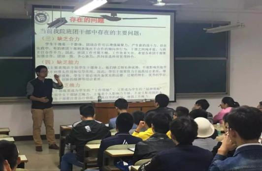讲座上,朱云首先对团学会的工作职责进行定位。他指出,班团干部是一支服务型队伍,全方位完善自己,全心全意为同学的成长成才服务为学生干部之宗旨。随后,他对学院班团干部中存在的问题进行归纳,他指出缺乏活力、动力、合力与魄力是目前最严重的问题。针对这些问题,朱云建议大家在工作中要注重沟通与交流,学会自主思考与创新,并及时做好工作总结与反思。最后,朱云希望每一位干部要进一步提升自己的思想素质,不断探索工作方法,积累工作经验,带着表率意识与责任意识全心全意为全院师生服务。