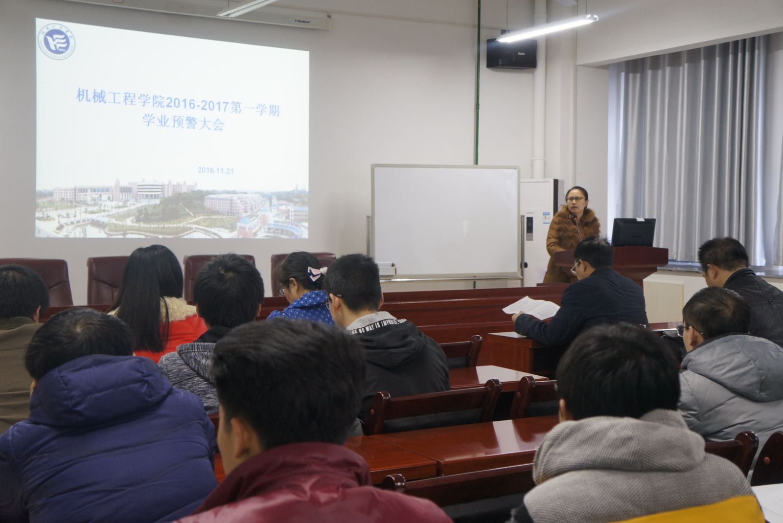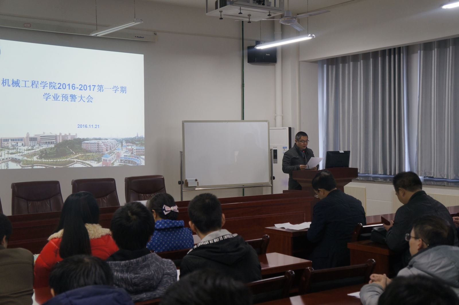 11月22日下午12点半,best365英国在线体育在机械楼312会议室召开学业预警会议,会议由学办老师李星主持,学院副院长卿上乐、副书记李儒峰、学工办主任曾依依及留级和学业预警学生和相关班主任出席此次大会。