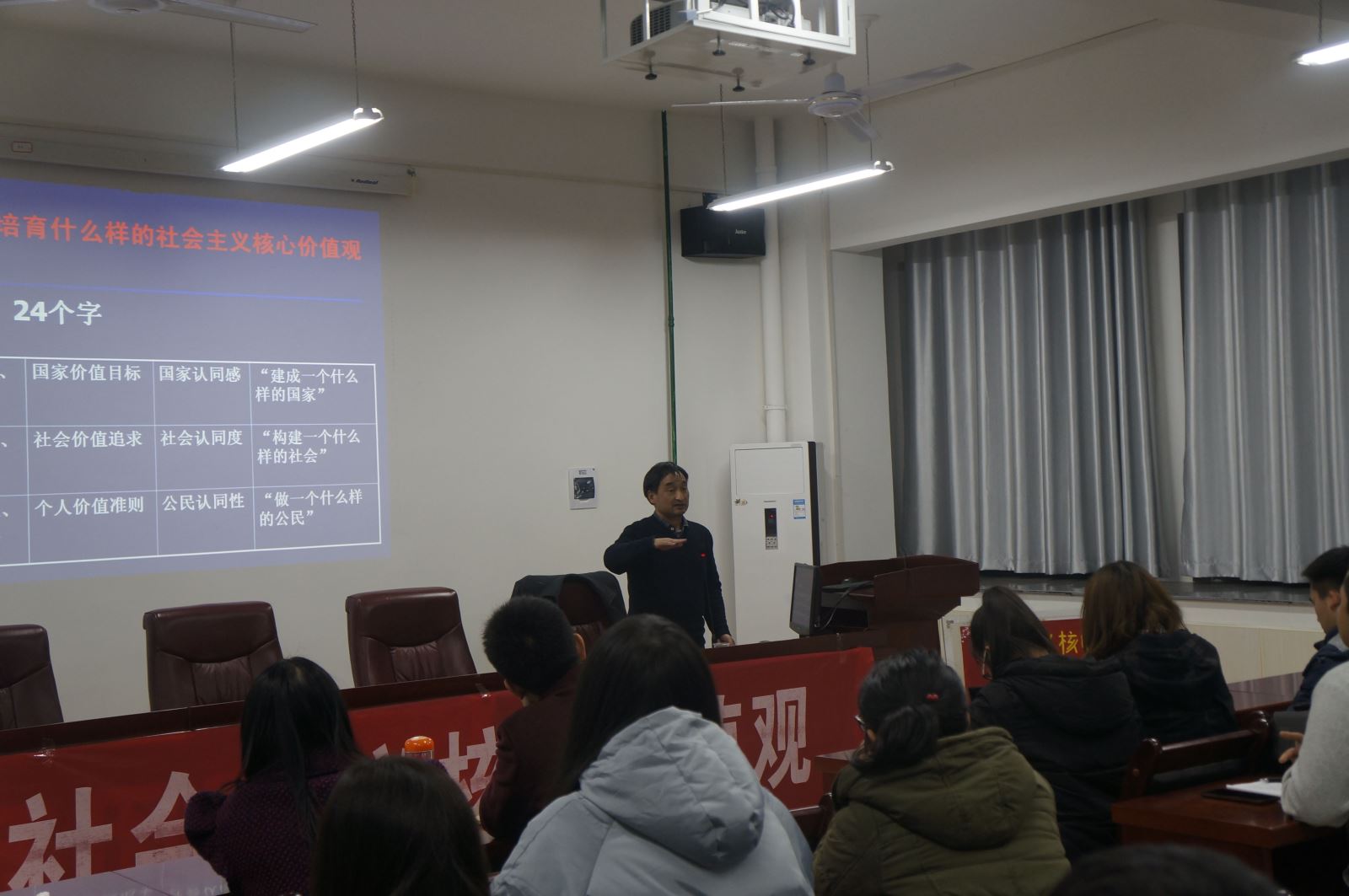 12月15日晚,best365英国在线体育于机械楼312会议室举行“当代大学生如何践行社会主义核心价值观”主题讲座。本次讲座由宣传部部长曾曙林主讲,365英国上市公司在线办公室部分老师和16级学生聆听讲座。