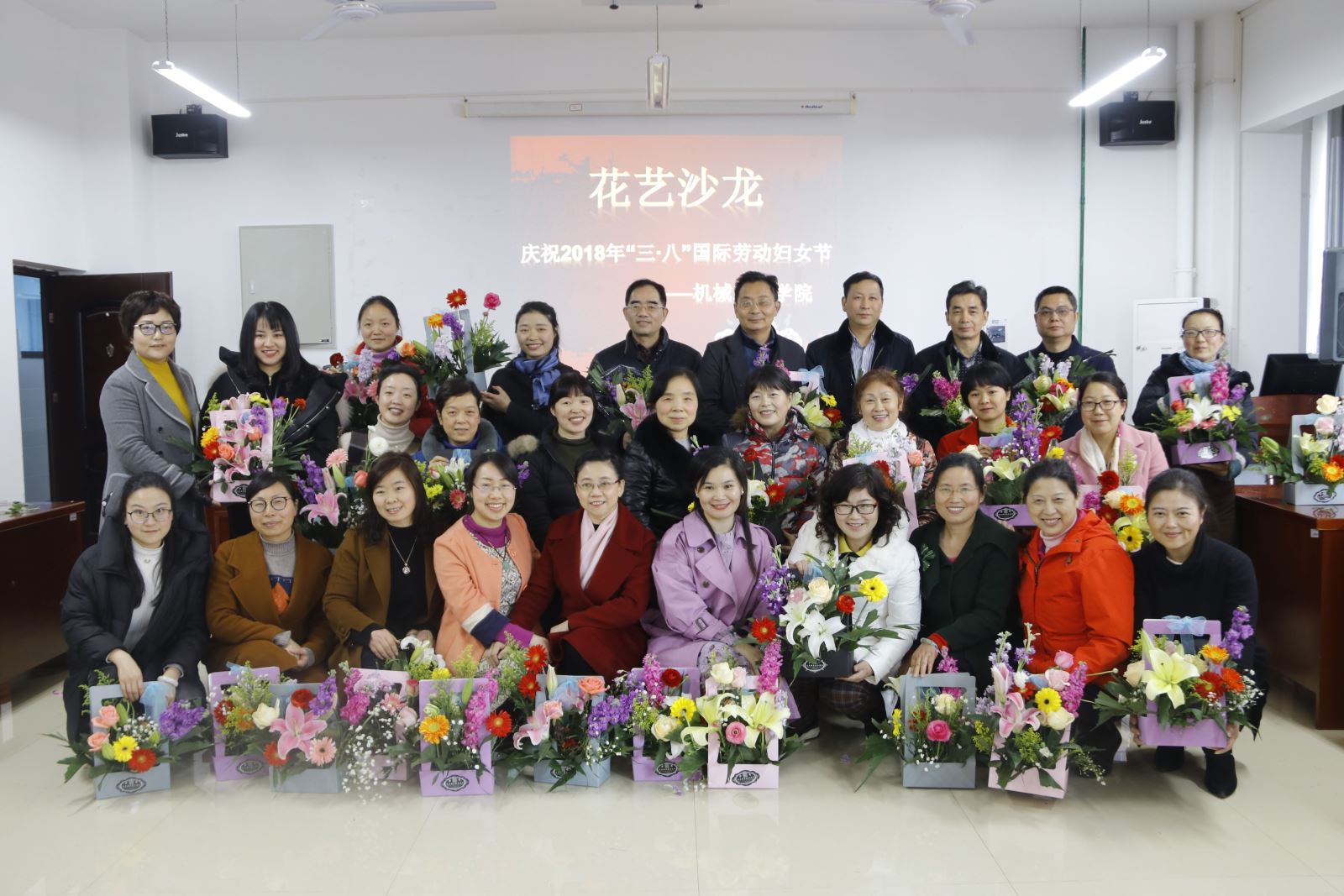 为庆祝2018年“三·八”国际劳动妇女节的到来,best365英国在线体育于3月8日下午在机械楼312室举行花艺沙龙活动,活动由工会副主席范冬英主持,学院领导班子以及全体女教职工参加。