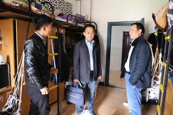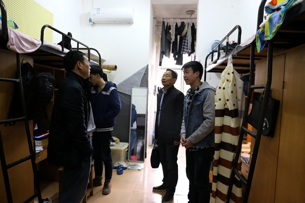 3月13日下午,为了解新学期学生到校情况,17级学生寝室搬迁情况,best365英国在线体育院长魏克湘、党总支书记谢骐、副院长卿上乐、副书记李儒峰深入学生宿舍,看望返校学生。