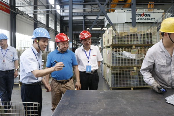 在杜俊鸿和唐亚明的陪同下,考察组一行参观了公司文化展厅。在参观到公司的工匠文化背景墙时,刘升学饶有兴致地与公司领导围绕工匠精神进行了深入的交流,并充分肯定了晓光模具公司创办工匠学院的战略举措和重大意义。随后,考察组一行参观了公司的生产车间,包括模具制造车间,零部件冲压车间和自动焊接车间,晓光模具公司车间先进的生产设备和自动化程度给考察组一行留下了深刻的印象。在实地走访后,刘升学充分肯定和赞扬了我校与晓光模具公司校企合作取得的成效,并为后续继续深入推动校企合作提出了宝贵的建议。