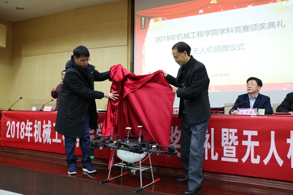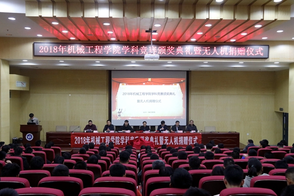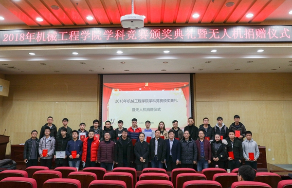 12月20日下午,best365英国在线体育在二报告厅举行学科竞赛颁奖典礼暨无人机捐赠仪式。党委委员、副校长李军林,湖南亚安智控设备有限公司代表、2009级优秀校友张鸣,创新创业学院院长刘洞波,best365英国在线体育院长魏克湘、党总支书记谢骐、副院长卿上乐参加了此次颁奖典礼,学院党总支副书记李儒峰主持仪式。