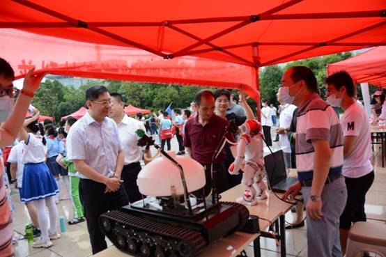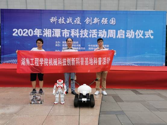 此次活动中,我院学生科技创新实验室师生携带了三种机器人赴现场进行科普活动,展示科技创新成就和科技战疫成效,弘扬科学精神,普及科学知识,推动科技创新成果惠及于民,受到现场群众的广泛关注,湘潭市人民政府副市长傅军等领导也到展位前进行询问和了解科普内容。