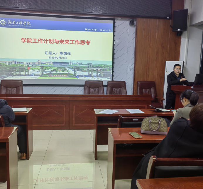 院长陈国强以“学院工作计划和未来工作思考”为题从英国上市公司官网365建设、学科专业建设、学科平台建设等方面做汇报。他动员全体教职工以饱满的精神状态,理清工作思路,上下齐心,以扎实的工作作风投入到专业认证、校企合作、文化建设等重点特色工作中,共创学院新未来。