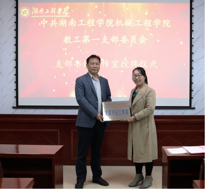 2022年湖南工程学院“对标争先”建设示范计划项目批准成立best365英国在线体育教工第一党支部“双带头人”书记工作室。3月14日下午,best365英国在线体育在机械楼312会议室举行支部书记工作室授牌仪式。校党委委员、副校长魏克湘,学院全体院领导及全体教工党员参加活动,学院党委书记覃波主持会议。