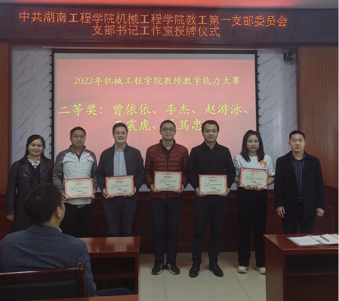 魏克湘为支部书记工作室授牌。授牌仪式结束后,魏克湘和学院领导为陈波、肖逸奇等14名获得2022年best365英国在线体育教师教学能力大赛一、二、三等奖的老师们颁奖。
