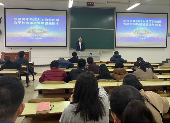 魏克湘以“习近平总书记对青年科技人才的论述”为主线,从提高政治站位,充分认识加强青年科技人才培养使用的重大意义;坚持思想引领,引导广大青年科技人才坚定理想信念;强化责任担当,激励青年科技人才主动服务国家和学校需求等三个方面,回答了“高校应如何加强青年科技人才的培养和使用”的问题。魏克湘指出,青年科技人才决定着科技创新的活力和未来,全体教工党员要统一思想、凝心聚力,共同推进学校青年科技人才培养质量提升,将自身的发展和学校事业的发展高度融合,在不断实现学校事业发展的同时,实现自我价值。