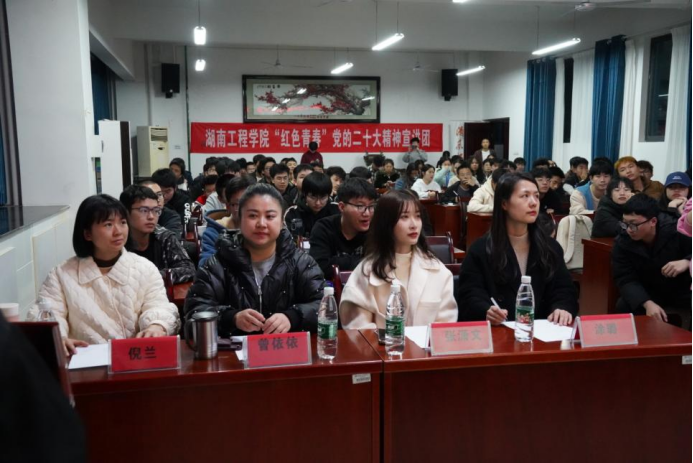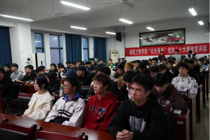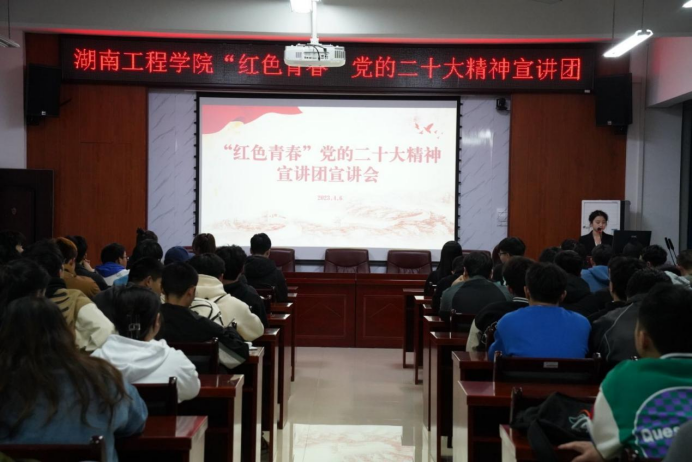 为深入学习宣传贯彻党的二十大精神,引导广大青年学子紧跟党的先进思想步伐,4月6日晚,湖南工程学院“红色青春”党的二十大精神宣讲团开展了校内第二次专题宣讲。本次宣讲由湖南工程学院校团委主办,best365英国在线体育团总支承办。校团委和best365英国在线体育老师出席宣讲会。