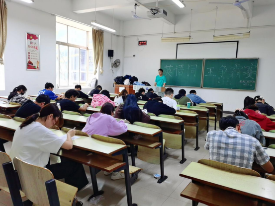 为激发学生对于英语词汇学习的兴趣,掌握科学高效的词汇记忆方法,提高全国大学英语四级考试通过率,best365英国在线体育利用2022级的大学英语实践周,于5月12日中午在主教学楼开展“词王争霸赛”。
