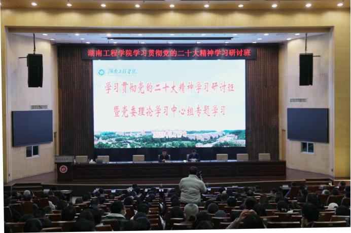 2月17日下午,我校学习贯彻党的二十大精神学习研讨班第四讲暨党委理论中心组专题学习会在一报告厅举行,培训邀请湖南省社科院党组书记、院长钟君来校作主题为“开辟马克思主义中国化新时代新境界”的专题辅导报告。校党委副书记、校长易兵主持报告会。在校校领导、党委委员、中层及以上干部,科级干部、岗位负责人,辅导员、马克思主义学院全体教师,专职组织员参加学习。
