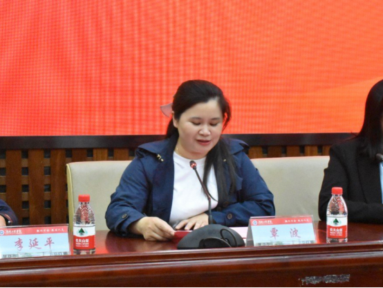 仪式正式开始,覃波以“感恩·传承”为题致辞,她代表学院向想的·宁波瑞狄安股份有限公司董事长欧阳雅鸿先生以及易丽虹女士关心母校、回馈母校的善举表示诚挚的感谢。她希望受资助的同学把想的这份温暖转化为“报效祖国、服务社会”的行动力量。
