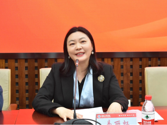 仪式上,易丽虹动情地和现场学生分享自己在湖工的求学经历,表达对母校和恩师的感激之情。她着重介绍了设置奖助学金的初衷,以激励湖工的学弟学妹们爱学习、踏实地、做好人,把自己活成一道光,成为可以为社会、为国家建功立业的人。