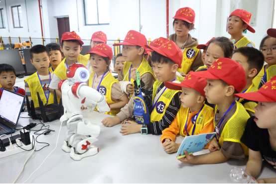 “小朋友,你们知道家里用的电是怎么来的吗”“为什么风力发电机有三个叶片?”在海上风电实验室,笑着和小记者们互动的是担任讲解员的校党委委员、副校长魏克湘。他重点介绍了实验室测试设备和风机模型。随后,小记者们走进新能源汽车实验室,现场观摩了新能源汽车模拟平台、新能源汽车的电传动系统以及大小形状各异的电池,了解了新能源汽车的工作原理以及进行电池实验的相关过程。互动时,小记者们纷纷化身为好奇宝宝,提出许多问题,现场科普团的老师和志愿者细心地为小记者们一一解答。最后,小记者们走进智能制造实验室。实验室里所摆放的精美3D打印件一下就吸引了他们的目光。科普团老师讲解了智能产线的工序运作,“我们要怎么样让机械臂乖乖的听话去做事呢?”“智能产线是一个模型还是真的在生产中有用到呀?”小记者们兴致高昂地提出自己的疑问。现场,智能制造实验室的人形机器人还与小记者们积极互动,孩子们流连忘返、恋恋不舍。