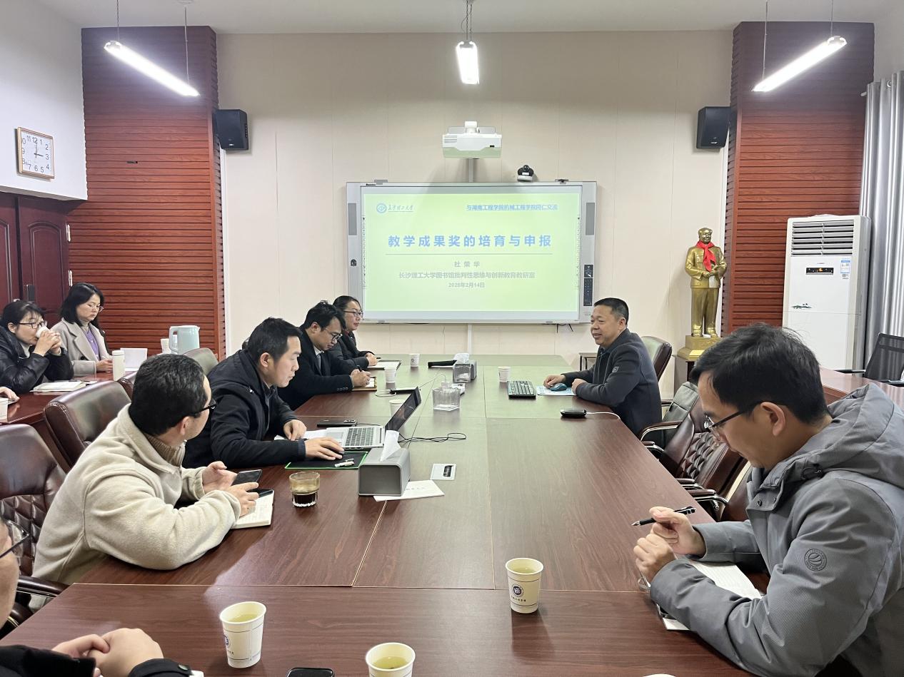 为进一步推动2025年教学成果奖申报的准备工作,best365英国在线体育于2月14日邀请了长沙理工大学图书馆馆长杜荣华教授来院专题指导。校党委委员、副校长魏克湘,全体院领导及部分教师参加了指导会。