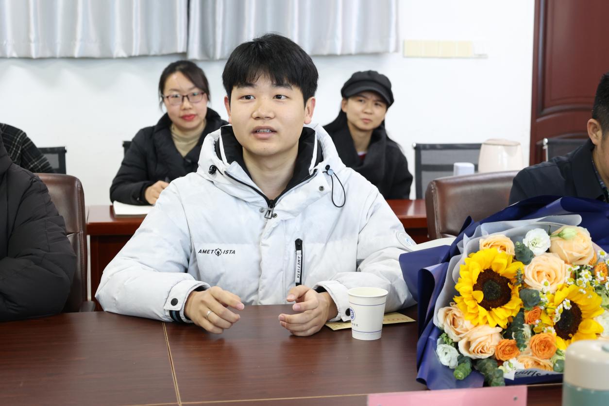 最后,黄昕强调邓辉武同学捐献造血干细胞是学校思政教育与“三色”教育深度融合的成果体现。他指出,邓辉武同学心系人民的救人行为展现了湖工学子的良好精神风貌,诠释了新时代青年的担当,是对雷锋精神的最好诠释。