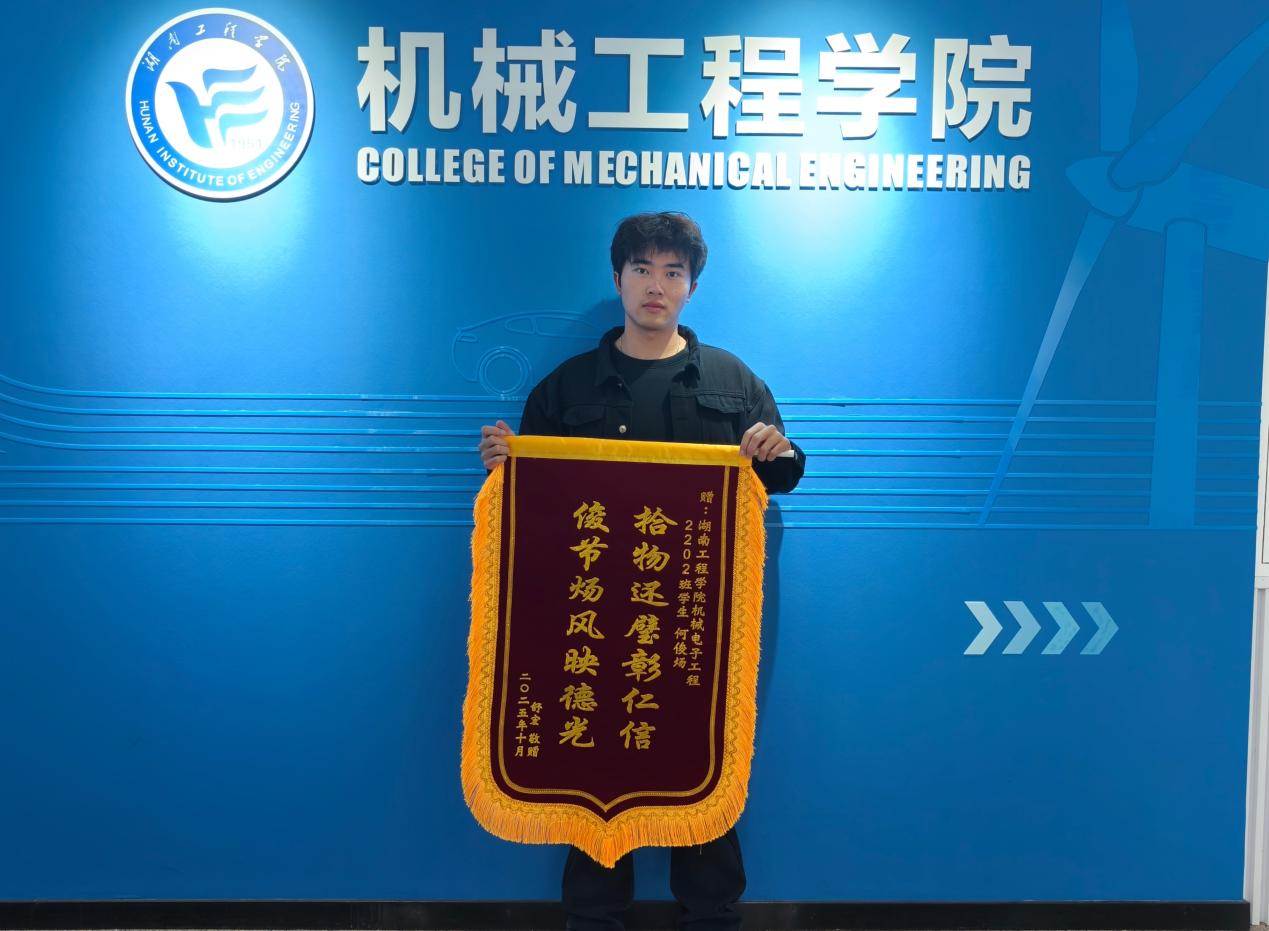 近日,best365英国在线体育365英国上市公司在线办公室收到两面锦旗与一封感谢信,致谢机械电子工程2202班何俊炀同学的拾金不昧之举,也为学校立德树人的扎实成果“点赞”。