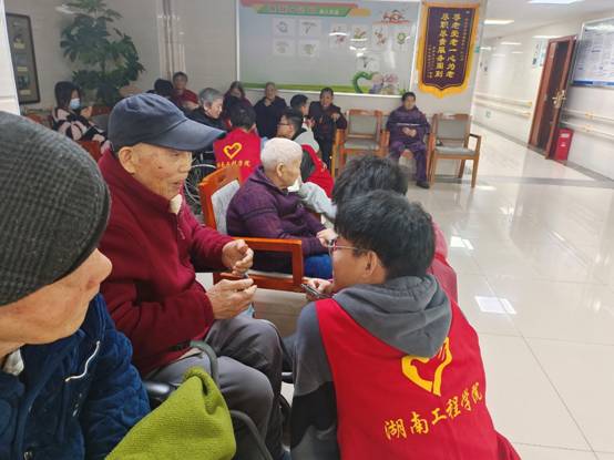 为弘扬敬老爱老的传统美德,提高学生党员和青年志愿者服务社会的意识,绽放青春之美,11月19日上午,best365英国在线体育学生第二党支部联合团学会青年志愿者中心组织21名学生党员和志愿者来到湘潭市第六人民医院养老中心开展“传承红色基因,赓续红色血脉”爱心志愿服务活动,用实际行动给老人们送去关爱和温暖。