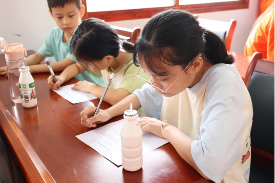 践行团成员通过调查问卷、实地走访、心理知识宣讲和团体辅导等形式展开调研。践行团成员向小学生发放《小学生学习动机调查问卷》,收集一手资料,梳理小学生的学习心理并提出针对性建议。在学习动机团辅活动现场,践行团成员通过小故事导入和心理科普知识,引发小学生对自己内外学习动机的思考和探索。最后,践行团成员带领活动现场的小学生设计学习信念卡,用彩笔在学习信念卡上写下自己的理想和激励自己学习的话语,鼓励小学生在学习疲惫、挫败、想要放弃时拿出信念卡为自己加油打气。“我好好学习是为了实现自己的理想”。“我要成为一名画家”。“我要成为会做机器人的科学家”,小学生以接龙的形式大声读出自己的学习信念卡内容。
