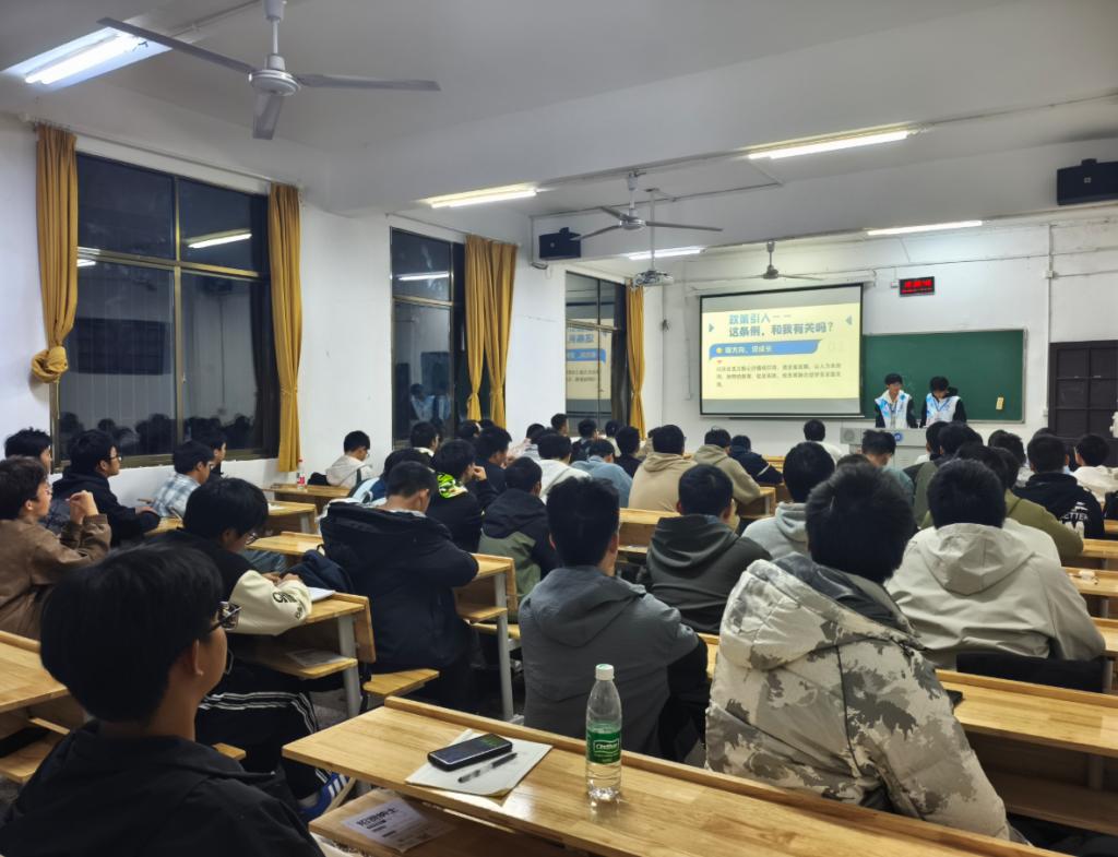 班会以“条例与我”为切入点,系统解读了《湖南省心理健康促进条例》的主要内容。该条例自2025年7月1日起施行,强调五育融合,明确学校应开设心理课程、提供免费咨询,家庭应营造健康氛围、支持心理就医,社会则提供财政与服务协同。宣讲结合案例,引导学生在遇到心理困扰时依法依规寻求帮助,为心理健康筑牢“防护网”。班会还介绍了学校心理健康教育资源与咨询流程,针对新生在独立生活、自主学习及多元社交中可能遇到的适应问题,分享了实用的心理调适方法,助力学生顺利过渡、积极成长。